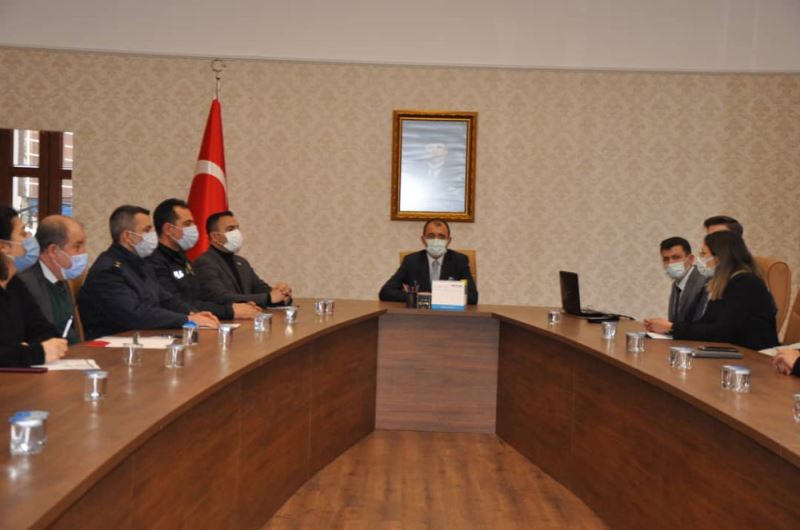 Biga Kaymakami Erdinç Dolu Baskanliginda kaymakamlik makami toplanti salonunda bagimlilik ile mücadele toplantisi yapildi.