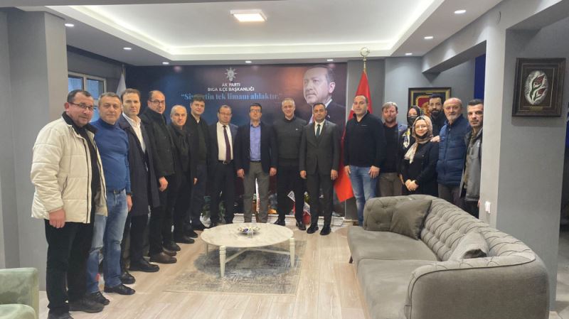 Biga Ticaret ve Sanayi Odasi (TSO) Yönetim Kurulu Baskani Sadan Dogan, Meclis Baskani Melih Akyil, yönetim kurulu baskan yardimcilari Sedat Çakir ve Hüseyin Sahin, yönetim kurulu üyeleri Hüseyin Erdogan, Cüneyt Oflaz ve Tevfik Basarir ile Genel Sekreter Mustafa Mutlu’dan olusan TSO heyeti 23 Subat 2022 Çarsamba günü Adalet ve Kalkinma Partisi (Ak Parti) Biga ilçe teskilatini ziyaret etti.